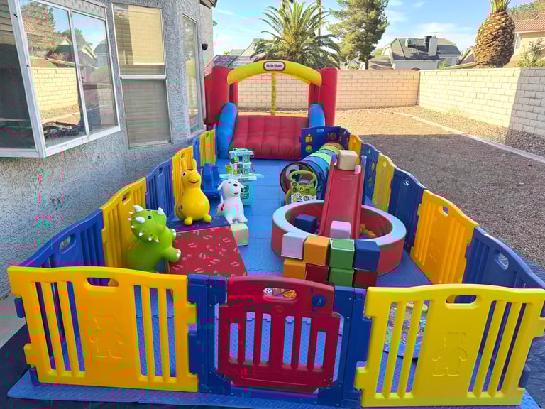 Play set is a safe area that includes toys that help with sensory development, group play, and social interaction making it the perfect playtime party for any child.